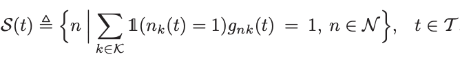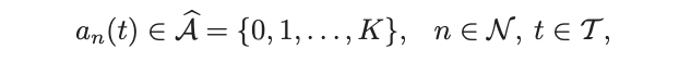 2) 动作:使用用户n在时隙t中选择的导频序列的索引来指示其动作
