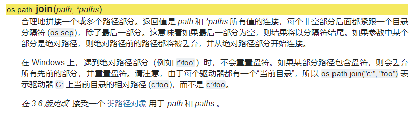 参考地址:https://docs.python.org/zh-cn/3.7/library/os.path.html#os.path.join