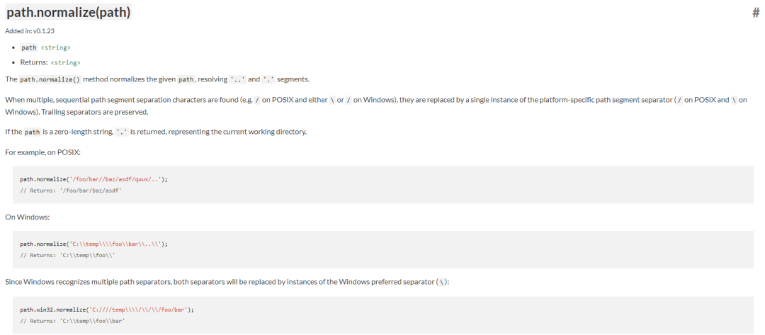 参考地址:https://nodejs.org/dist/latest-v16.x/docs/api/path.html#pathnormalizepath