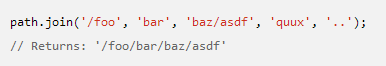 path.join方法接收无限个参数,并对参数进行拼接,重点是拼接完成后对路径进行标准化处理。虽然不知道标准化处理是什么,但是示例可以看到该方法能识别..跳转。![]()
