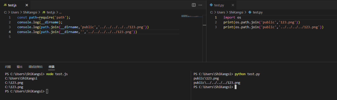 同样的在Python中也有path.join方法,但是没有这个问题。