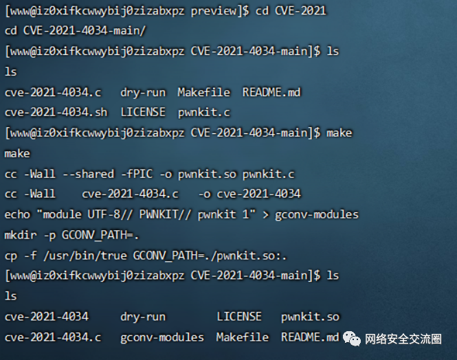 反弹shell,然后进入exp文件夹编译运行即可获取到root权限。