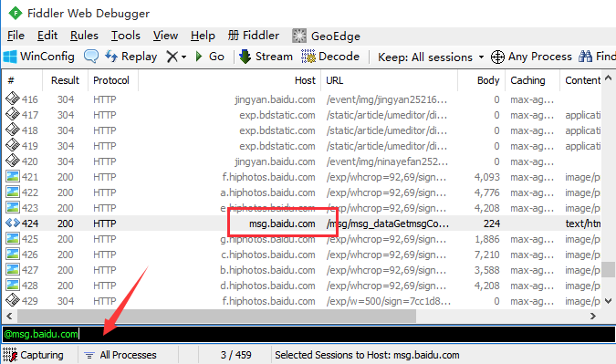 Host 指定显示某个域名下的会话: