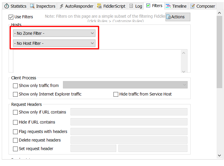 勾选左上角的Use Filters开启过滤器,这里有两个最常用的过滤条件:Zone和Host