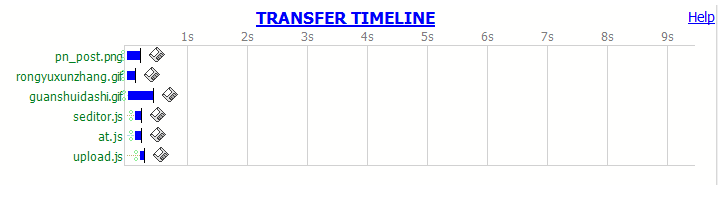 在左侧会话窗口点击一个或多个(同时按下 Ctrl 键),Timeline 便会显示指定内容从服务端传输到客户端的时间: