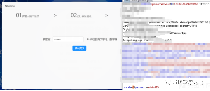 发现请求体里只有userIds和password两个参数,前者是要修改密码用户的uid,后者是新密码的值,猜测这里可能存在任意账户密码重置,而后又意识到我们传入的用户不存在,所以前端存储的userid变量为0,于是我们将请求包中userIds字段修改为1,尝试重置管理员密码。