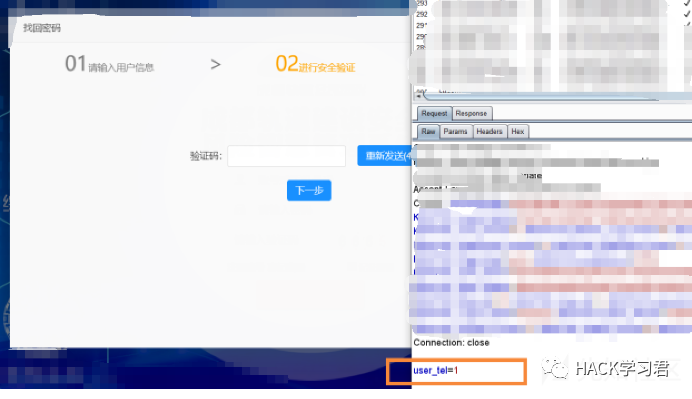 再来一次,抓包并修改响应包,将0改为1,放包后成功来到第二步,前端自动请求了一个后端接口发送验证码