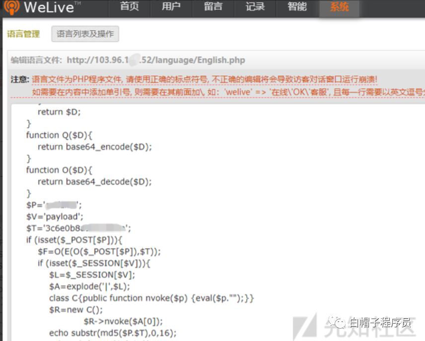 下一步当然是getshell,找了一圈发现直接可编辑语言配置文件:
