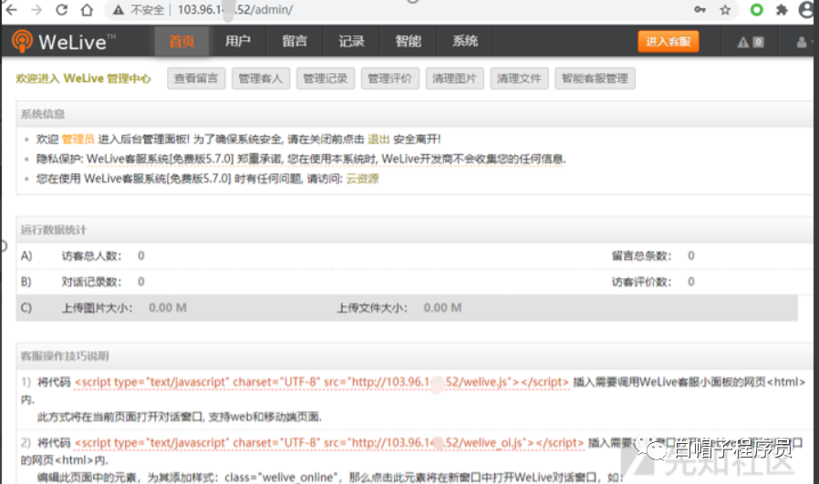 从官网查找客服软件的教程。发现后台路径为:/admin