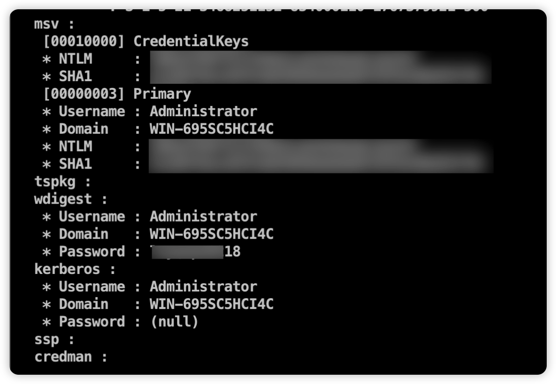 由于是攻防演练,拿到越多的分数越好,在这里就不考虑一些其他问题,拿到当前机器后我抓到了明文密码: