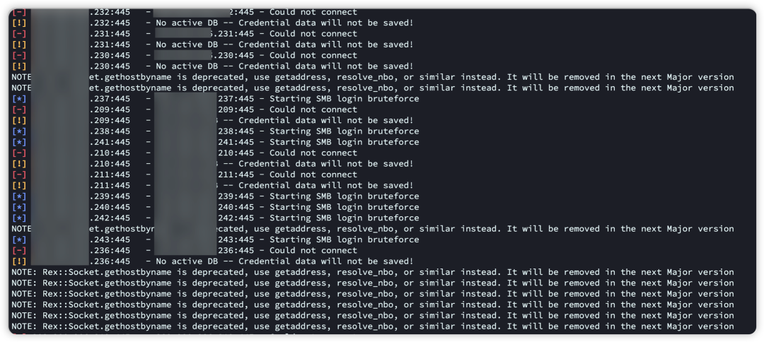 但是通过此密码去利用 MSF 对 C 段进行密码喷洒发现没有一台主机被成功横向出来: