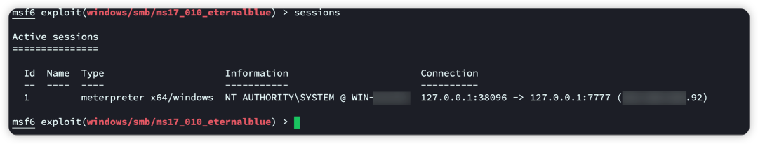 搞到这里发现横向不了,其他 Web 又不想用 0day 打,回过头来用 MS17010 打下了 200 这台: