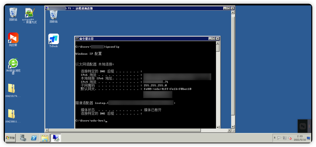 这个时候利用 mstsc /admin 可以绕过并成功登录到目标远程桌面: