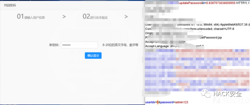 发现请求体里只有userIds和password两个参数,前者是要修改密码用户的uid,后者是新密码的值,猜测这里可能存在任意账户密码重置,而后又意识到我们传入的用户不存在,所以前端存储的userid变量为0,于是我们将请求包中userIds字段修改为1,尝试重置管理员密码。
