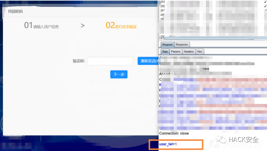 再来一次,抓包并修改响应包,将0改为1,放包后成功来到第二步,前端自动请求了一个后端接口发送验证码
