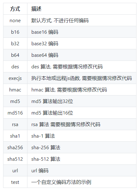 支持的编码或加密方式