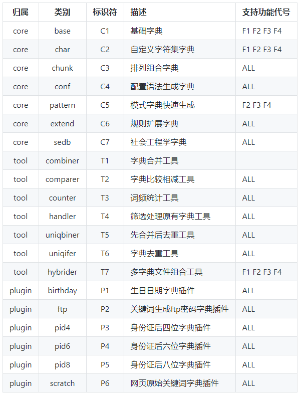 pydictor可以生成的所有字典的类型及其说明
