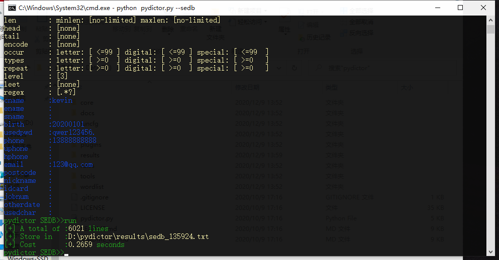 生成独一无二的高度定制、高效率和复杂字典,生成密码字典的好坏和你的自定义规则、能不能熟练使用pydictor有很大关系