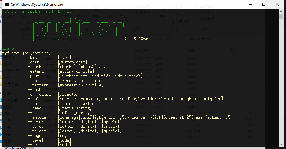 python pydictor.py -tool shredder base 擦除当前输出目录下所有以"base"开头的字典文件