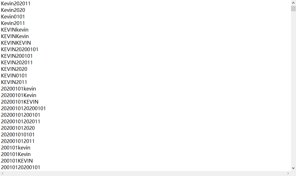 python pydictor.py -char "[email protected] " --len 1 3 --tail @site.com3. 排列组合字典
