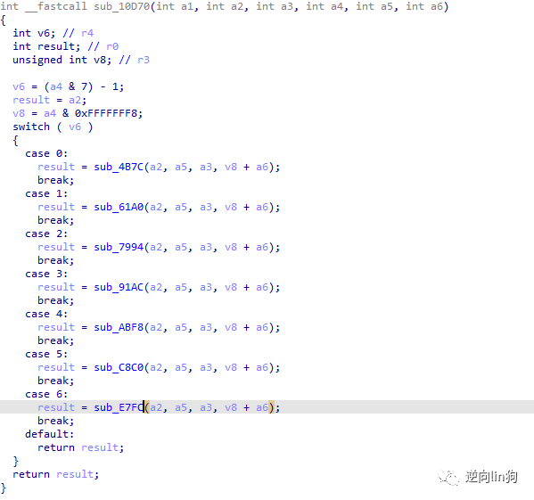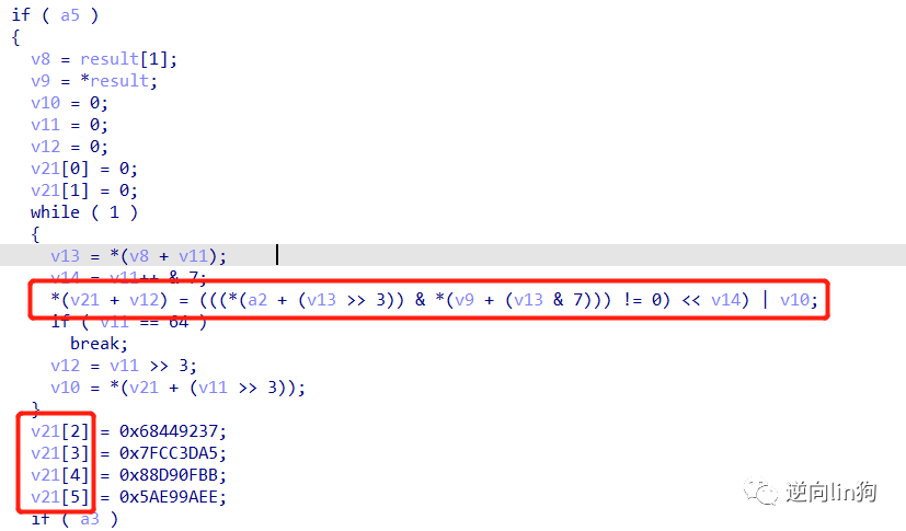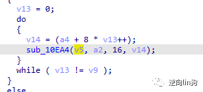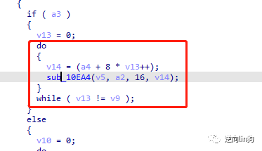 这里循环每次取8个字节进入sub_10EA4计算 一共循环a5 >> 3次