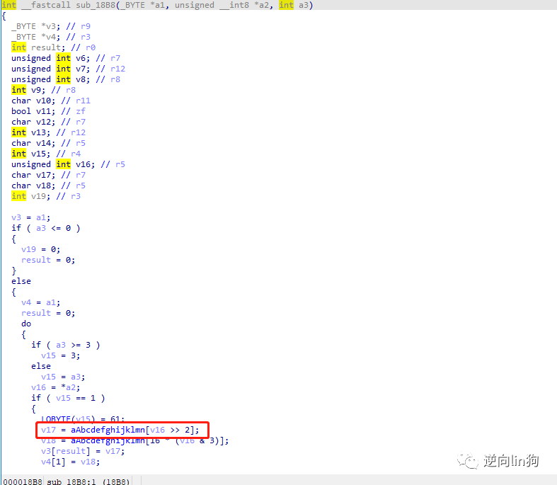 将异或后的结果取低位然后再与a2[v17]进行运算最后算出结果