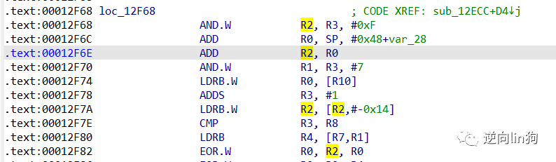 R0=(SP+0x20-0x14)+(R3&0xf)