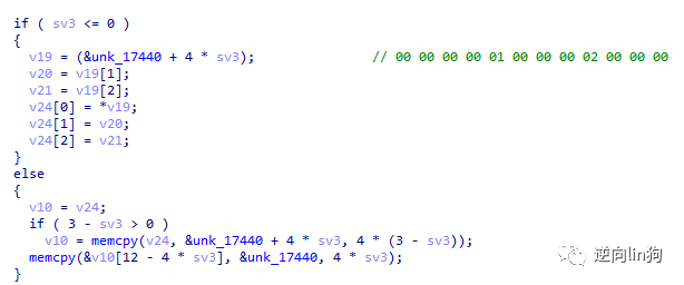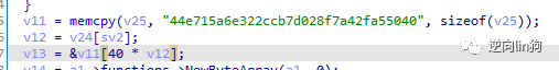 往下看这里先是内存拷贝了一个值然后根据v12 * 40的值进行偏移 其实实现的就是一个数组取值的操作这里根据伪代码可以翻译为