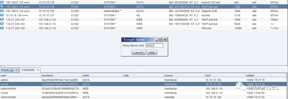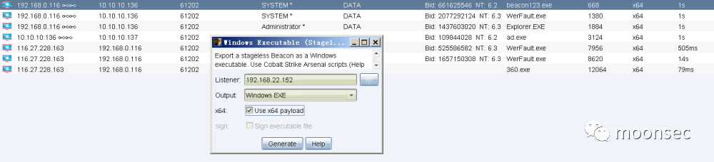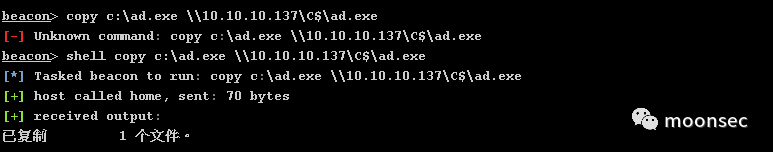 第二步:第二台机器作为中转机器生成ad.exe,并通过第二台机器ipc连接域控并上传exe