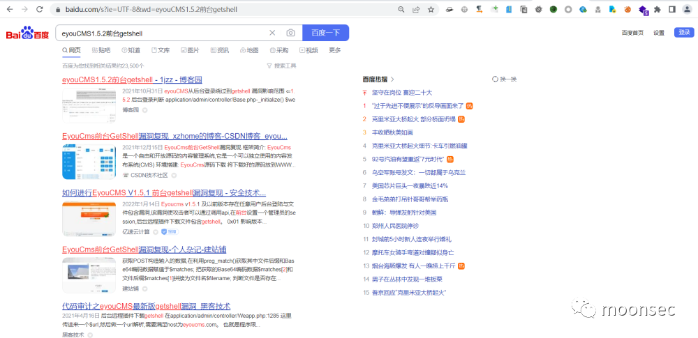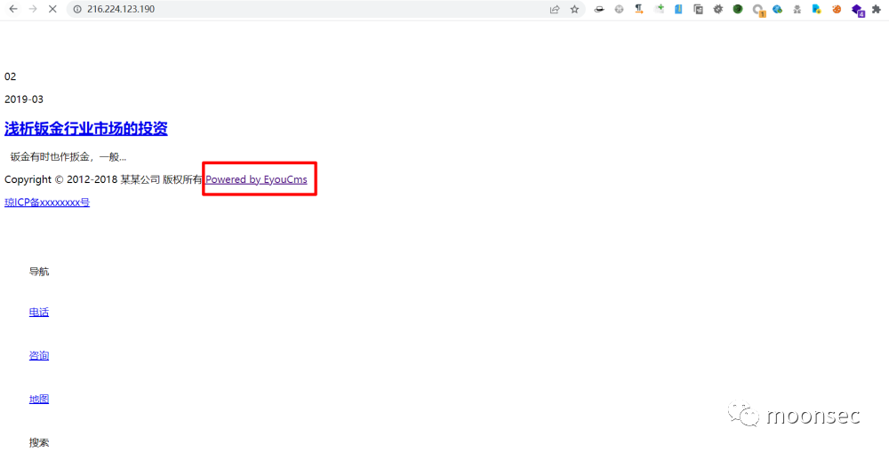 通过百度搜索,发现eyoucms1.5.2版本存在前台getshell