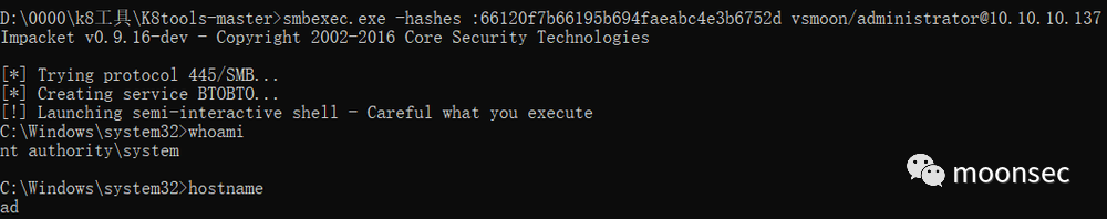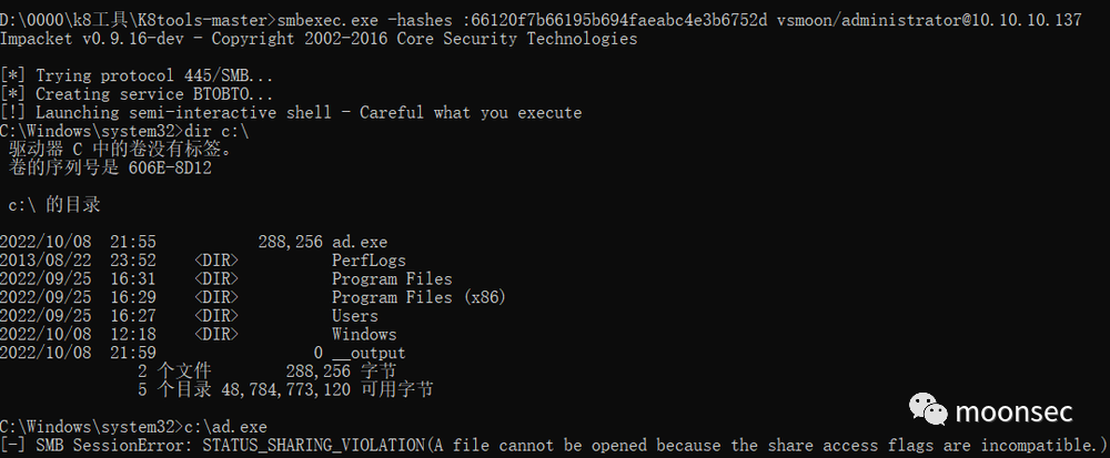 第三步:通过smbexec.exe获取的adshell执行ad.exe