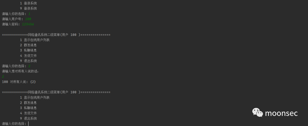 输入账号密码后选择向全部人发送消息触发客户端序列化