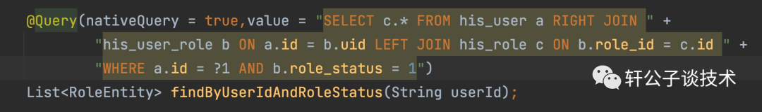 唯一的sql语句,用的是注解方式,使用预编译语句查询