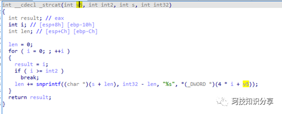 栈溢出点在snprintf(),这个函数是为了安全性代替sprintf(),它多了一个size参数(int32-v6),使得打印的字符串长度受限。