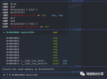 可以看到maxlen明显负数溢出成一个很大的正数了,s地址也可以自己控制,那么我们需要将CCCC赋值到一个栈上的返回地址,它必须比0xffffd1d0更高。