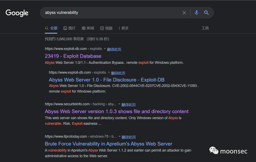 一个一个点进去看,最早的remote漏洞是2003-12-08公开的,Abyss Web Server 1.0/1.1 - Authentication Bypass