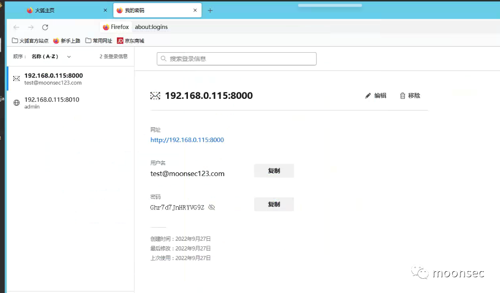 因为是考试,不管那么多了,Todesk直接上去看吧,看到了Firefox保存的明文密码。