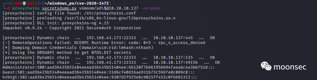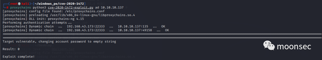 proxychains python3 reinstall_original_pw.py ad 10.10.10.137vsmoon exp
