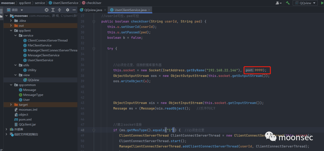 我是在6号中午的时候成功RCE了的,一开始我也是在登录之前去发送socket流去rce,但是这样的坏处就体现出来了:那就是你不知道你是否在idea执行的流量是否真的到了服务端。所以我们写在信息群发类里面,可以在登陆成功之后去群发消息,再触发RCE。