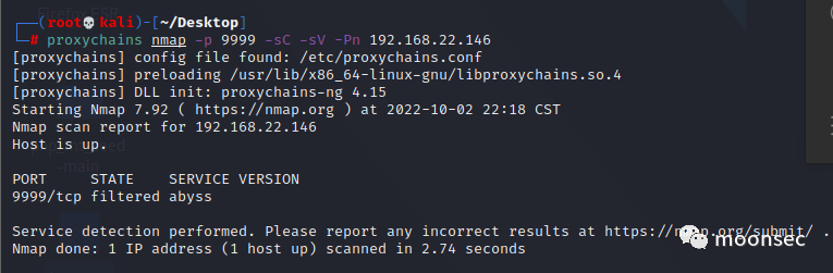 proxychains nmap -sT -Pn 192.168.22.146 //得到139,135,445,9999永恒之蓝失败,看下9999是什么东西。