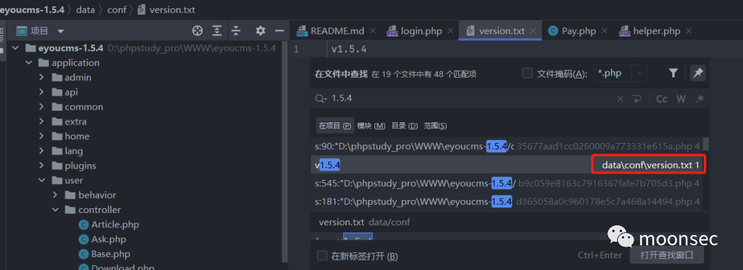 那要怎么确定版本呢?我们试试在IDE里面全局搜索关键字 1.5.4