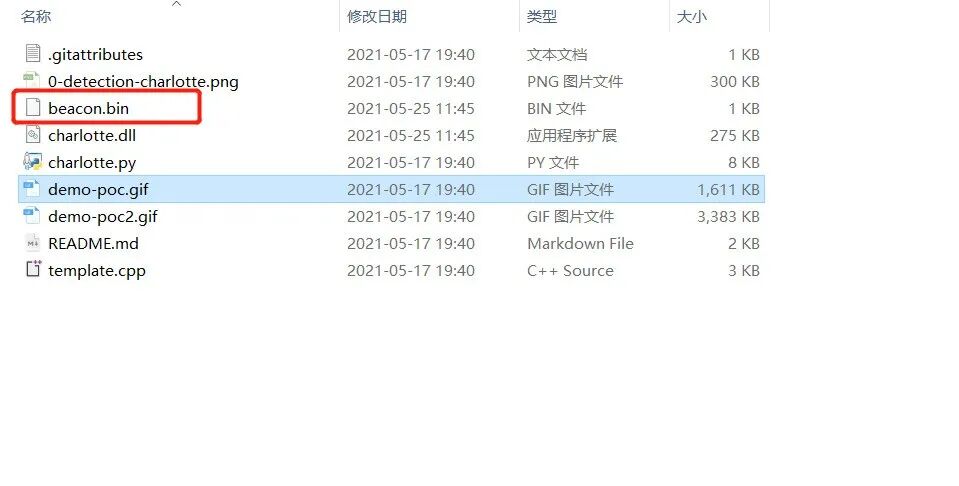 成功获得shell,但是大部分做内网都是使用CS和MSF我这里就用CS做免杀马,我这里使用charlotte来制作免杀马,先使用CS生成一个raw的payload,然后将payload放入项目路径下,直接python执行。