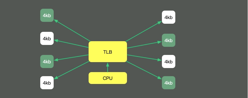 回头看我们最长的那副图,上面有一个叫做TLB的组件,它的速度虽然高,但容量也是有限的。这就意味着,如果物理内存很大,那么映射表的条目将会非常多,会影响CPU的检索效率。