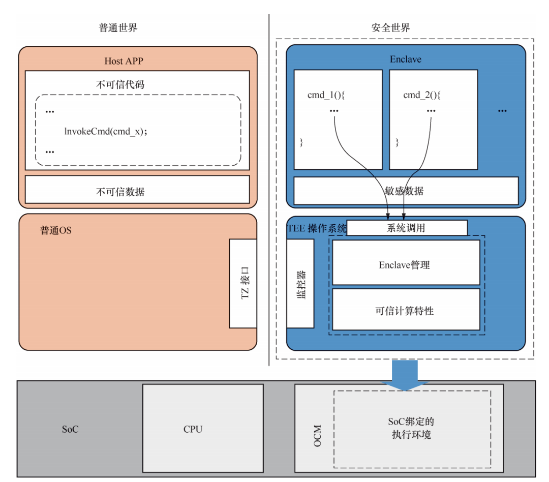 电路板级物理攻击和软件侧信道攻击等新型攻击手段具有工具简单、低成本、易流程化等特点,是现代计算机软件系统甚至TEE等硬件安全架构(如ARM TrustZone、SGX)面临的严重威胁。为提供高安全的运行环境,产业界和学术界提出了现代Secure Enclave架构,并且已经部署到主流CPU架构中,如苹果处理器的Enclave技术、Intel的SGX技术和RISC-V的Key Stone技术。ARM处理器在智能终端和嵌入式领域具有统治地位,并且越来越广泛地应用到服务器领域。但是在安全性方面,ARM处理器只提供了ARM TrustZone技术,其威胁模型只考虑了软件攻击,完全达不到现代Secure Enclave在物理攻击和软件侧信道攻击方面的安全要求。