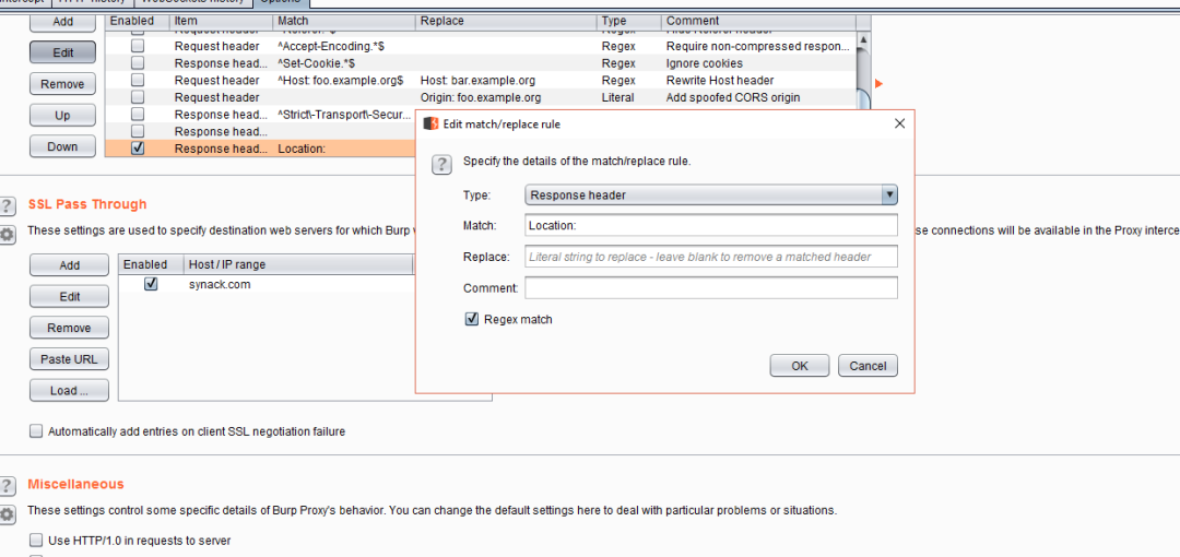 此外,可以通过在Burp Suite中添加Match & Replace规则来自动删除标题并自动更改值,从而实现这个过程的自动化。