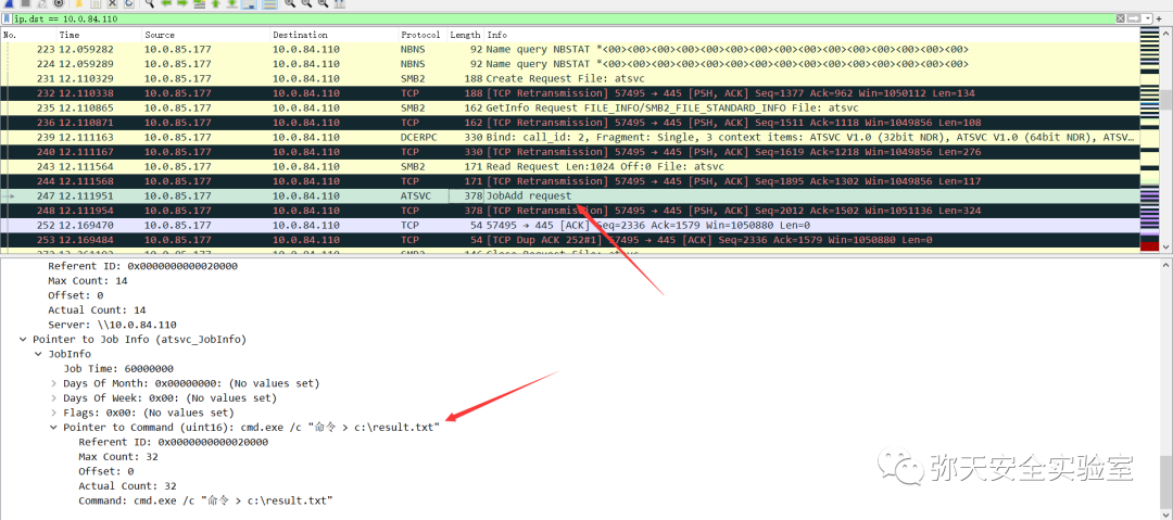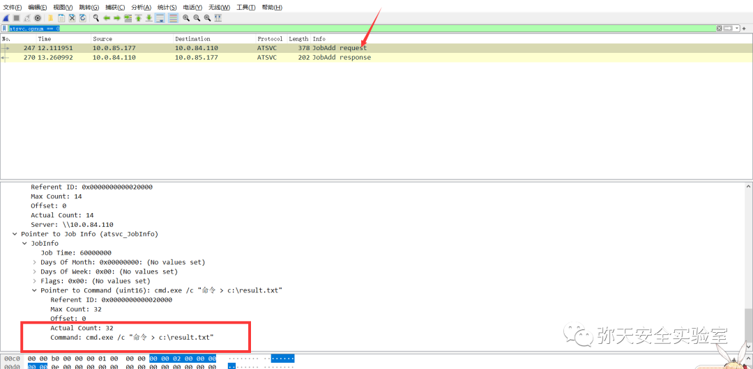 6.所以排查at命令的思路就是筛选出来所有的JobAdd请求,条件是:atsvc.opnum==0,这个时候只要排查Command里面的数据就行了。