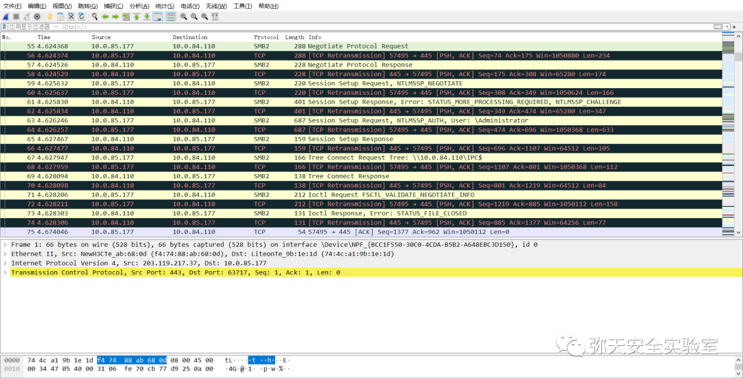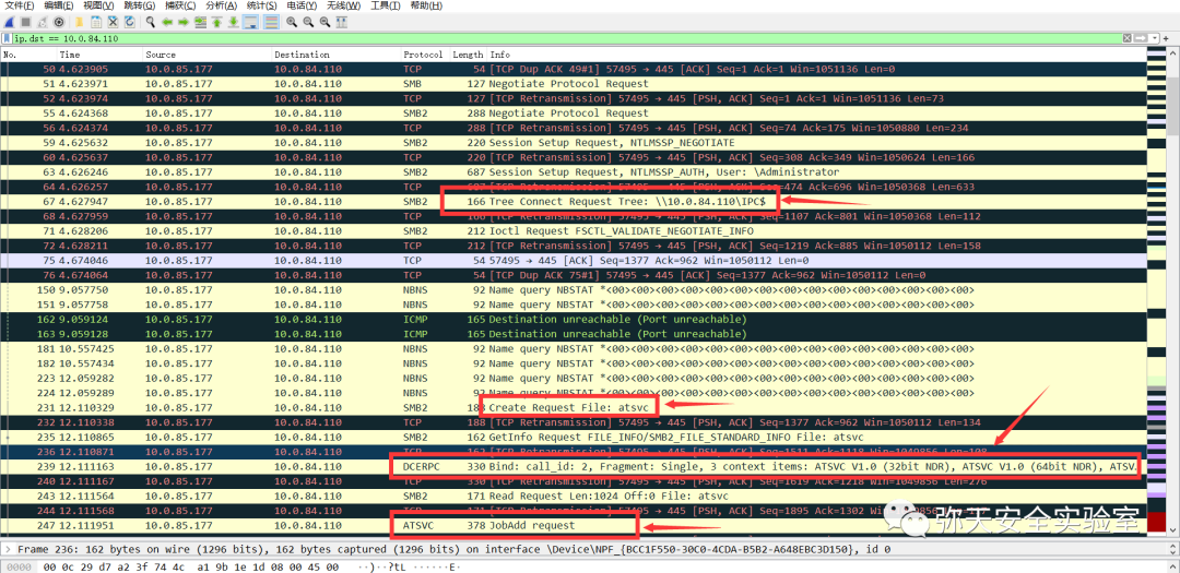 2.下面是自己之前本地搭建环境抓取的数据包,其中包含了at命令和schtasks命令产生的流量。