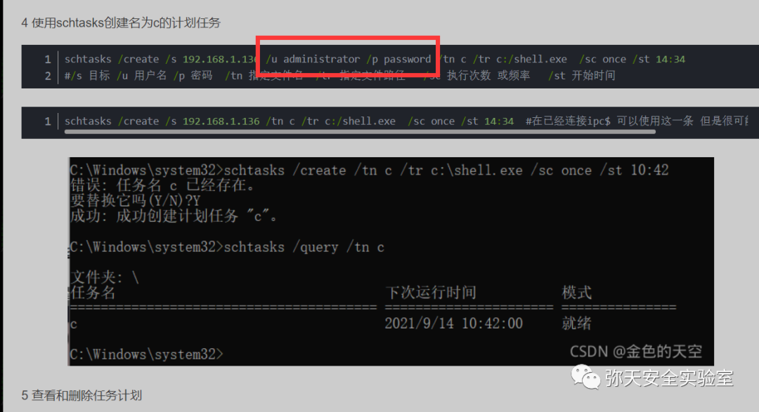 ②.schtasks命令(在2008及以后的系统中已经将at命令废弃,改用schtasks命令代替了at命令)。